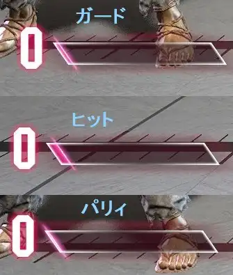 上の画像は、飛び道具をガード・ヒット・パリィ(たぶんジャストも同じ)させたときのSAゲージの増加量です。